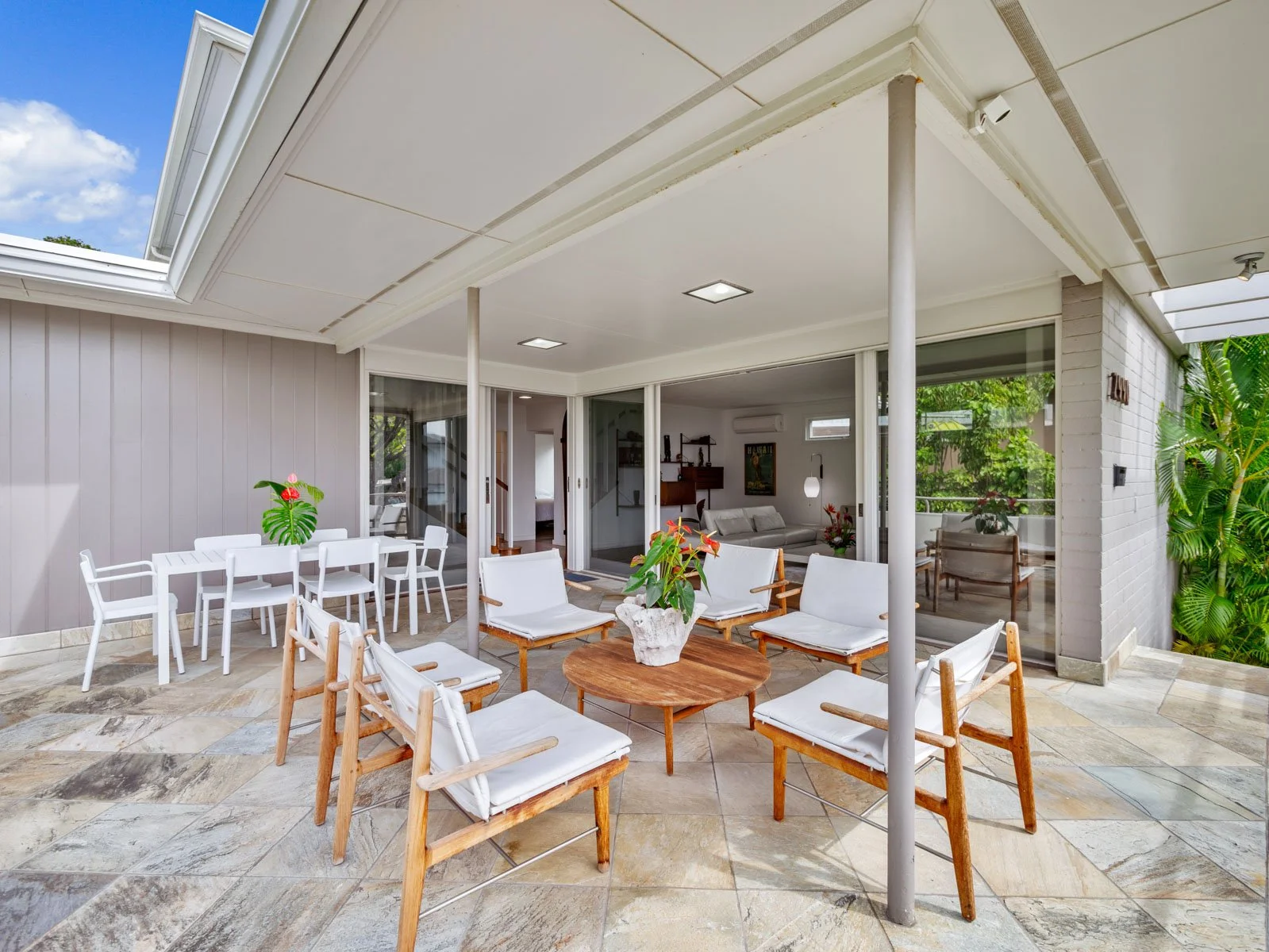 Built in 1950 and reimagined for today, the 4,000 square foot home contains 6 bedrooms, 4 bathrooms, a gourmet kitchen, a living room which opens to a lanai, and a family room which opens to a rear deck.